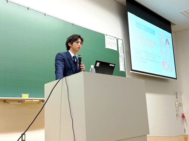 卒業生の飯島さんが講義に行った際の写真になります!